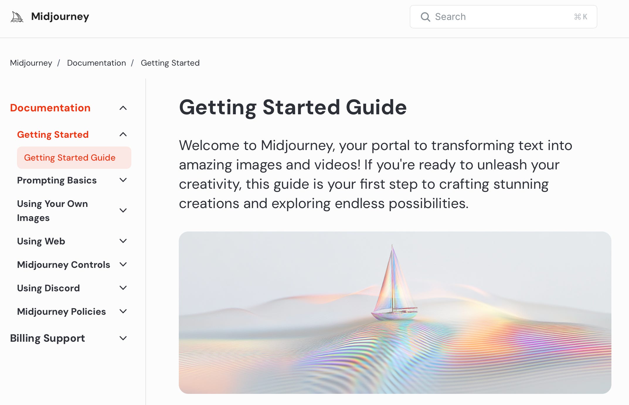 link: https://docs.midjourney.com/hc/en-us/articles/33329261836941-Getting-Started-Guide